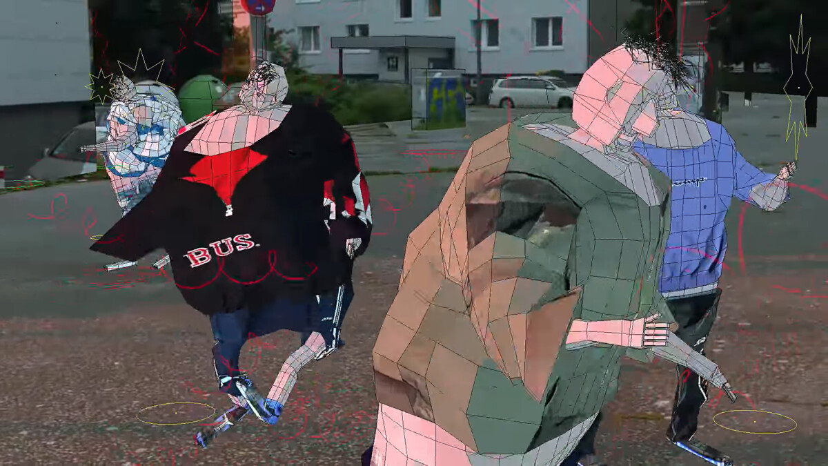 De forma similar, a malha poligonal visível nos curtas animados 3d de Nikita Diakur, baseados em elementos randômicos e algoritmos genéticos (meticulosamente programados por uma pessoa), não nos deixa esquecer, com humor, quanto trabalho humano ainda está por trás em fazer com que os movimentos físicos mais simples sejam viáveis em um modelo digital do espaço.